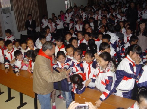 報(bào)告結(jié)束,當(dāng)鄭老走下講臺(tái)時(shí),立刻就被孩子們圍了起來。大家爭先恐后與他握手,有的同學(xué)還情不自禁地喊起“鄭爺爺好!”。會(huì)場內(nèi)氛圍融洽,令人感動(dòng)。整場報(bào)告會(huì)取得了超出預(yù)期的良好效果。