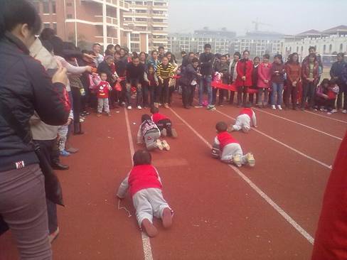小2班的小朋友們在此次運動會上的參加的比賽有寶寶爬、滾球和拾豆豆等。第1個比賽項目是寶寶爬,每位小朋友爬的速度很快,都有很棒的表現。有的幼兒還翹起他們的小屁屁爬,逗得在場家長們捧腹大笑;第2個比賽項目是滾球,在滾球的過程中,小朋友們步伐飛快,顯示了他們很強的身體靈活性;第3個比賽項目是拾豆豆,在游戲過程中,小朋友們牢記游戲的規則,沒有一個犯規的,很好地完成了比賽。三個比賽下來,孩子們都很開心。通過這樣的運動會,既鍛煉了孩子們的身體,又培養了他們的樂趣。