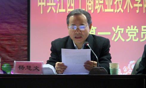 會議開始后,熊慶任宣讀了教育工委《關于成立中共江西工商職業技術學院委員會的批復》,同意成立中共中共江西工商職業技術學院委員會。隨后,楊慧文代表省委教育工委、省教育廳社辦黨委對對本次大會的召開表示祝賀,對工商學院近幾年建設和發展所取得的成績和黨建工作給予了充分肯定。他要求學院以黨委成立為契機,認真貫徹執行中央、省委和省教育工委的有關文件以及歷次高校會議精神,不斷加強和改進黨建工作,努力探索民辦高校黨建工作的新路子;要緊密結合形勢開展思想政治教育,提高全體黨員和師生員工綜合素質;要著力維護學校校園和諧穩定,牢牢把握黨對高校意識形態工作的領導權和主動權;要積極做好群團組織的領導工作,努力推進學校各項事業的發展,使學校辦出特色,辦出水平。