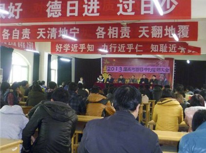 會議最后,在學生代表的帶領下,全體高三學生起立并莊嚴宣誓,表達了他們決戰2013年高考的信心與決心,同時也表達了他們對未來美好生活的向往。